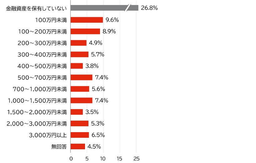 また、2人以上の世帯の金融資産の分布は以下のとおりです。